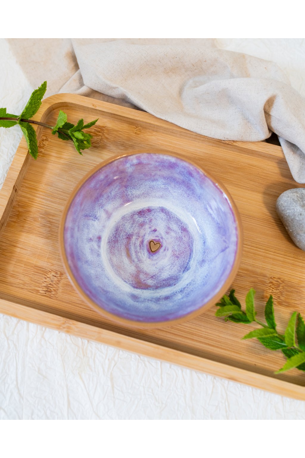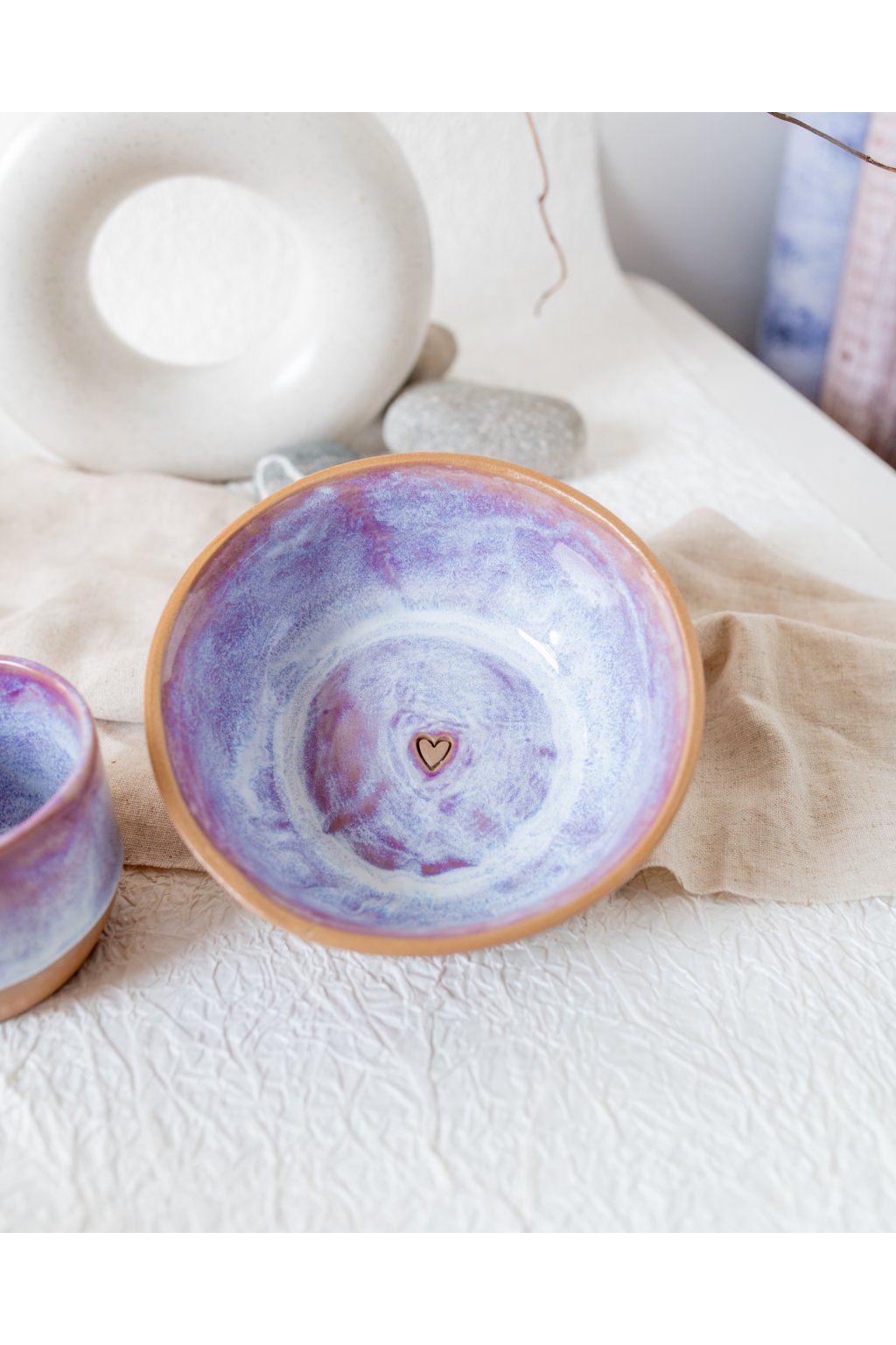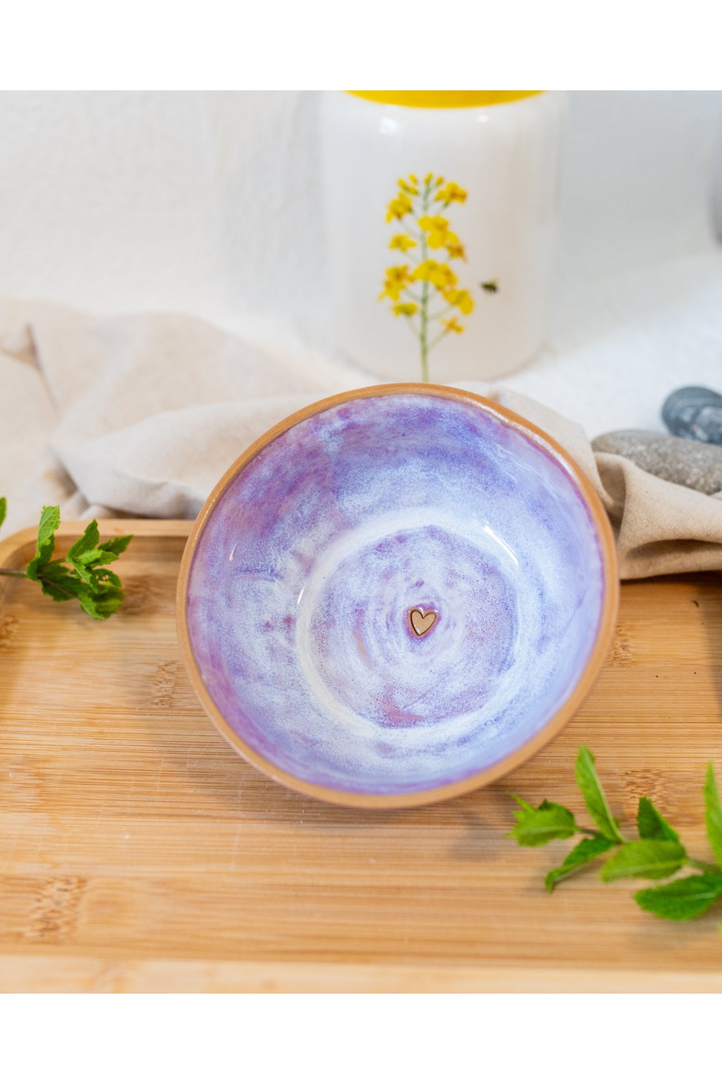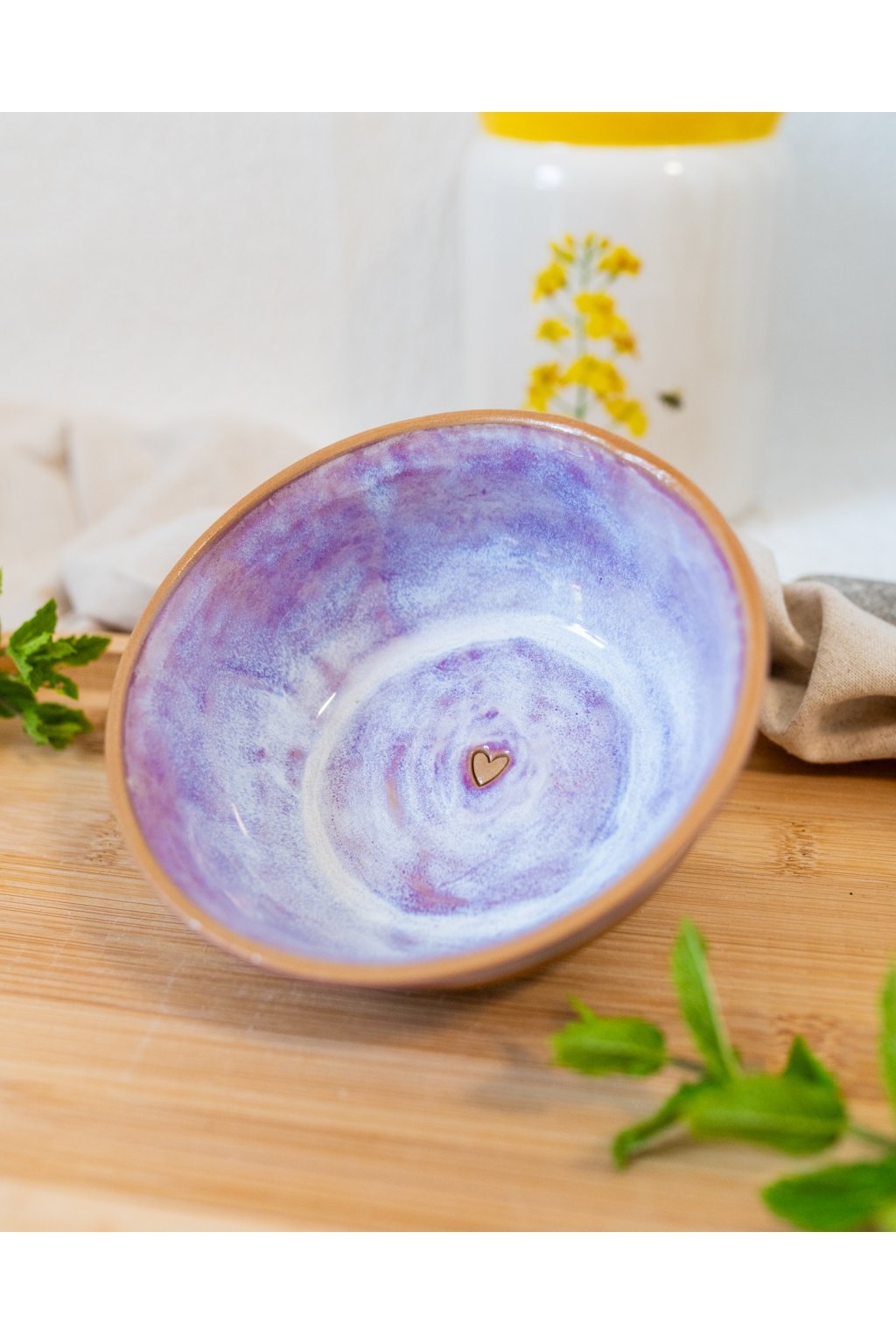 Ručně vyrobená snídaňová miska - Červánková se srdíčkem (300 ml) - II.jakost