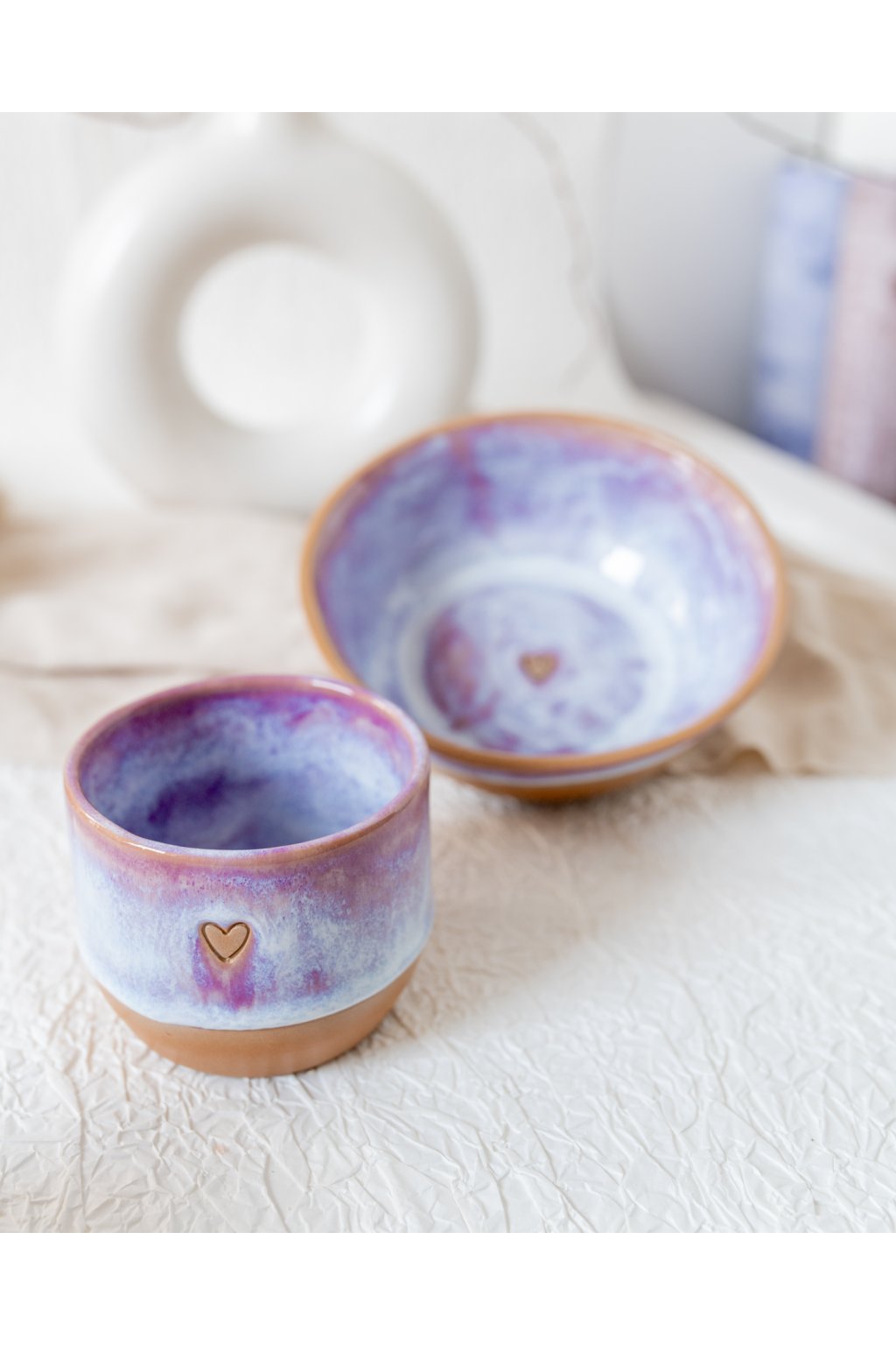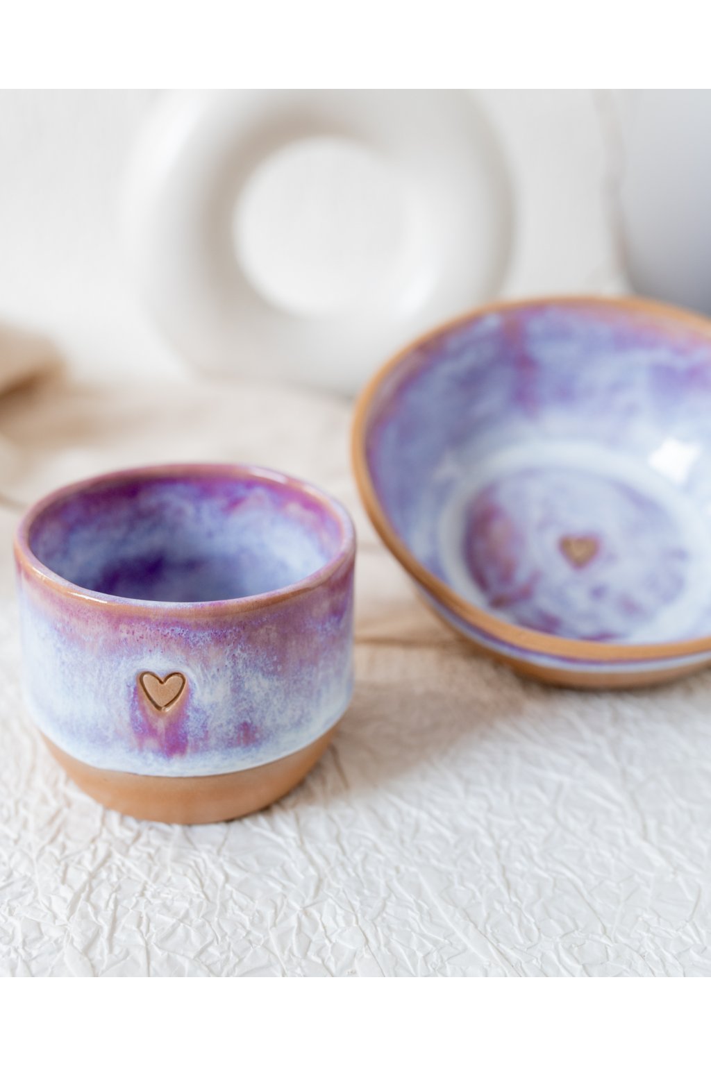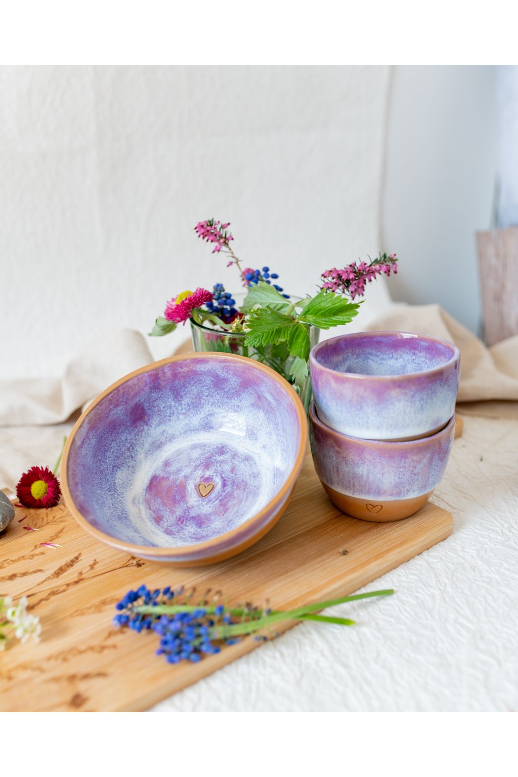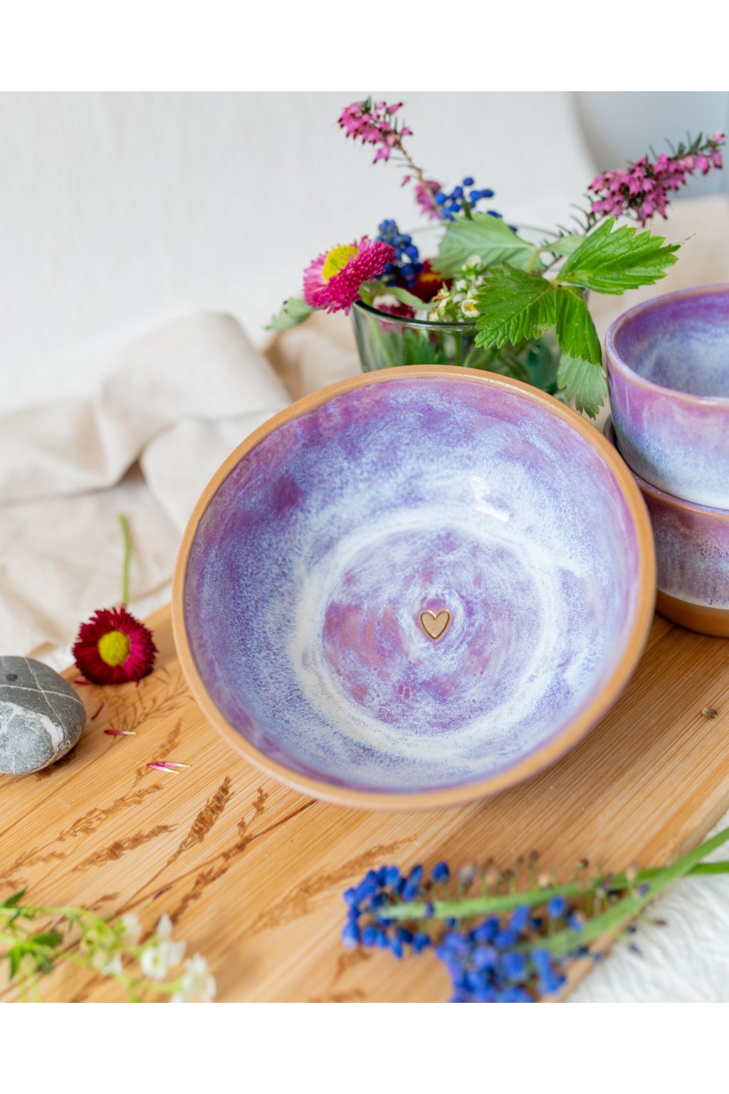 Ručně vyrobená snídaňová miska - Červánková se srdíčkem (300 ml) - II.jakost