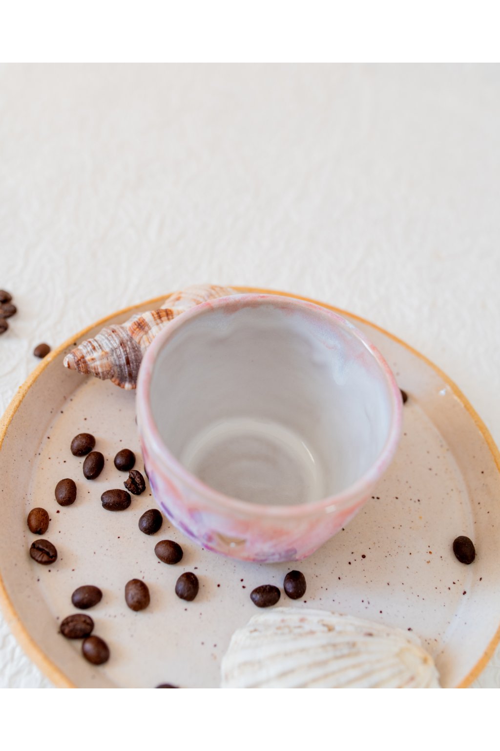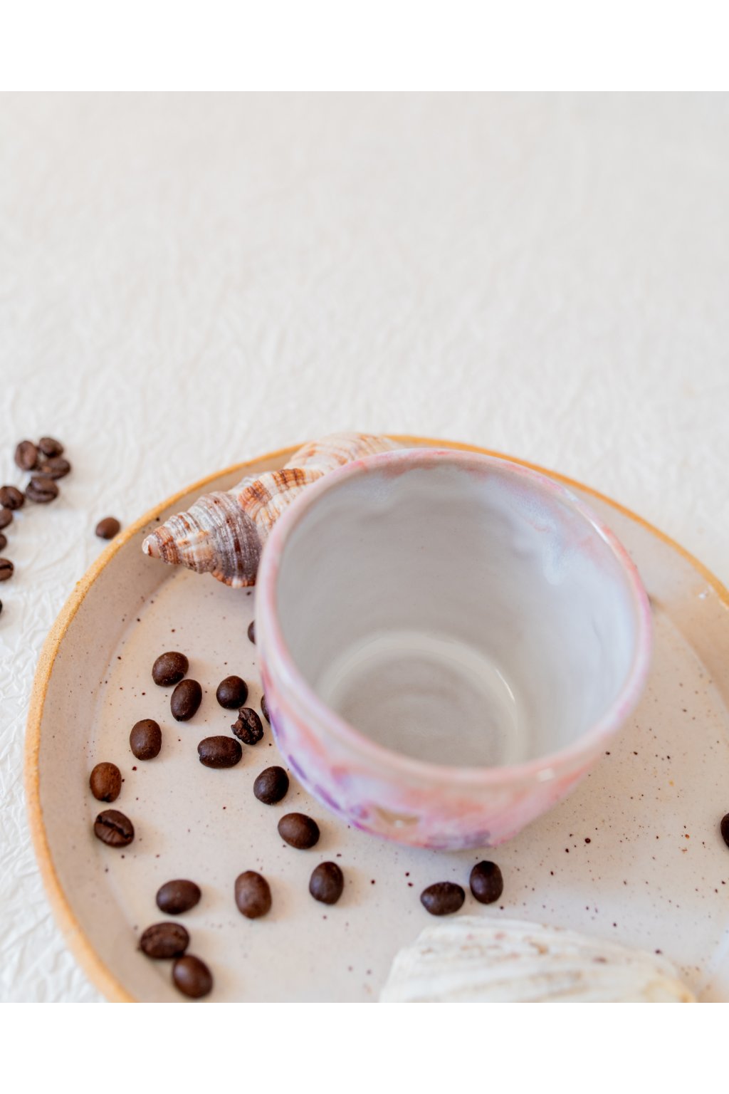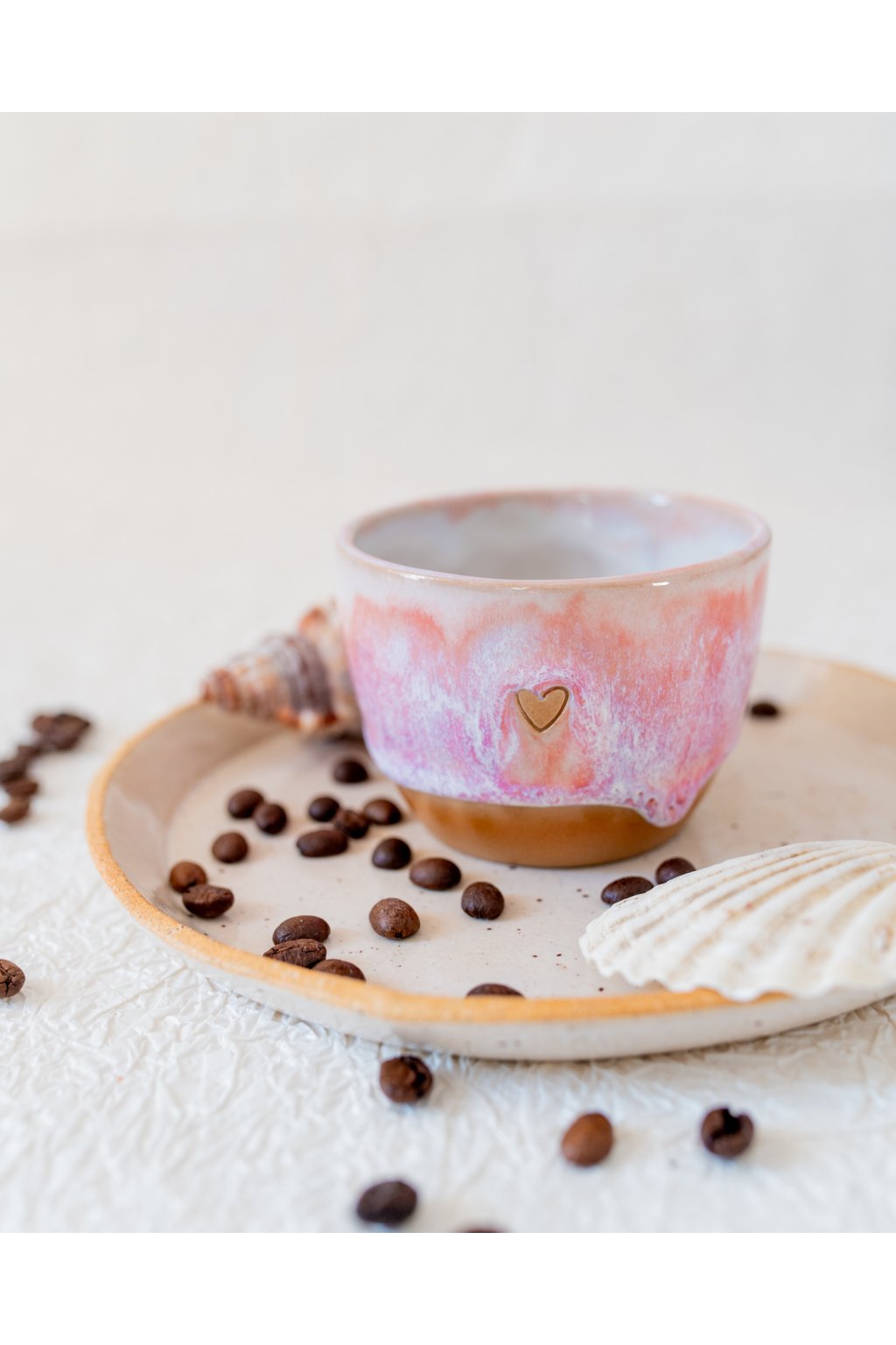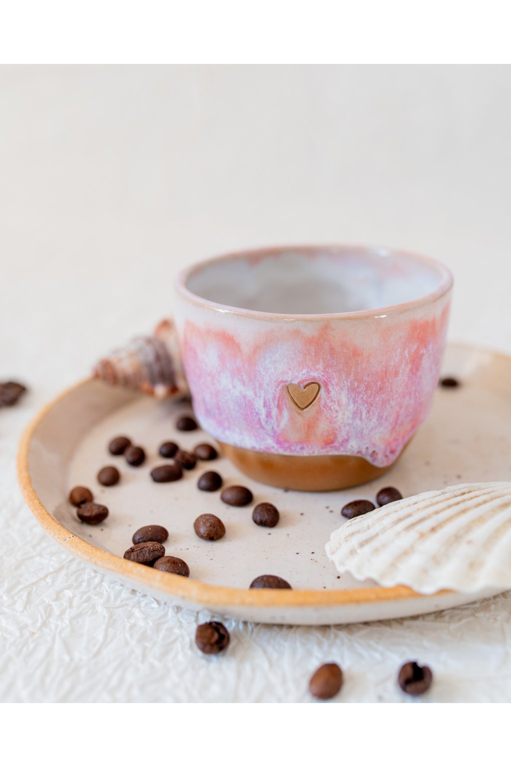 Ručně vyrobený buclatý kalíšek na kávu - Sakura se srdíčkem (150-170 ml) - II.jakost