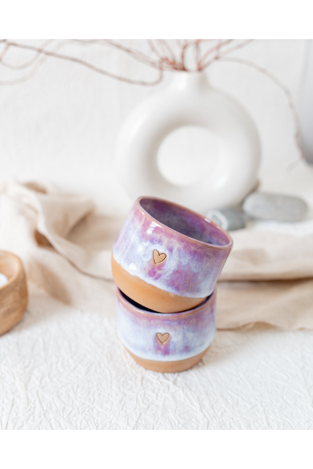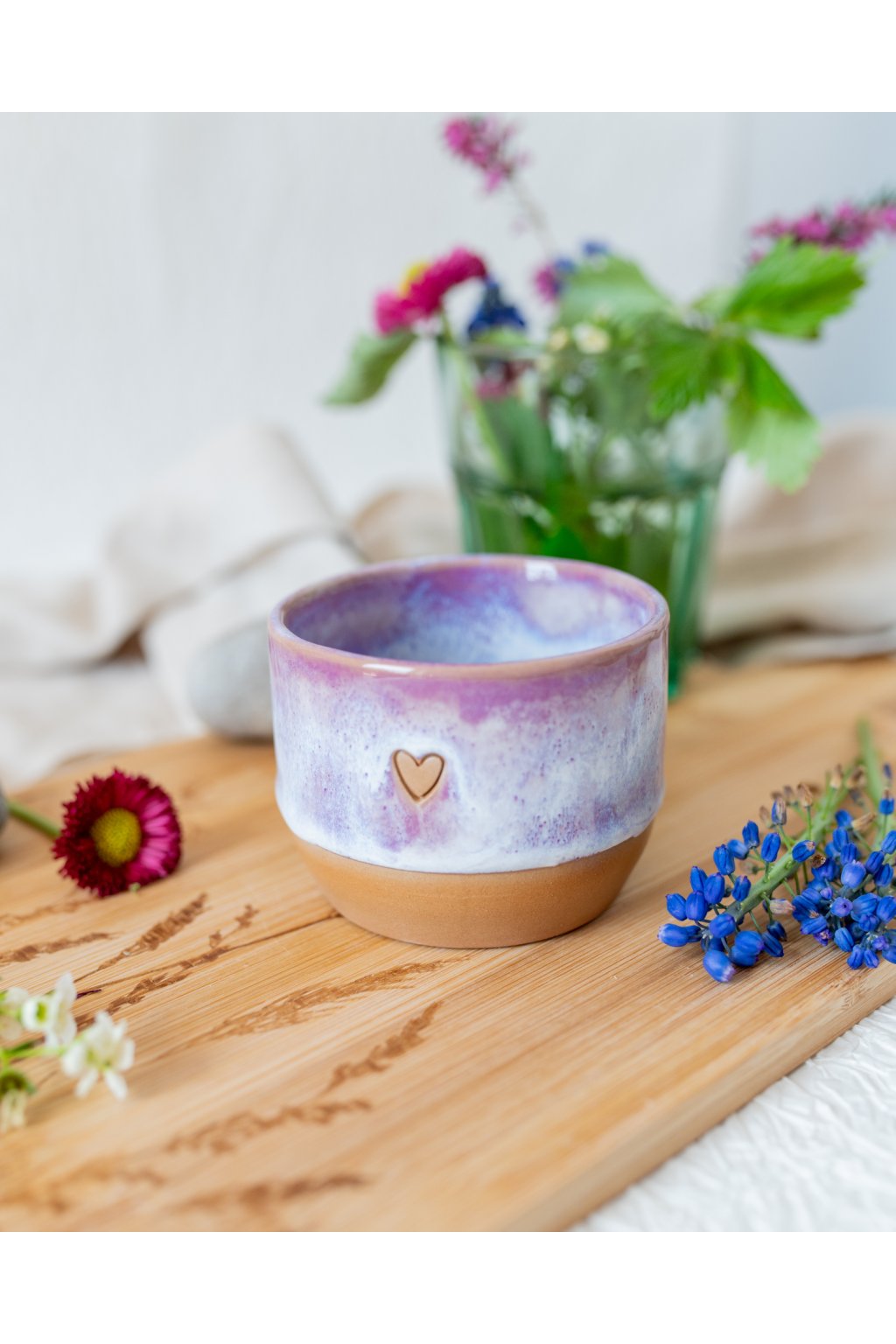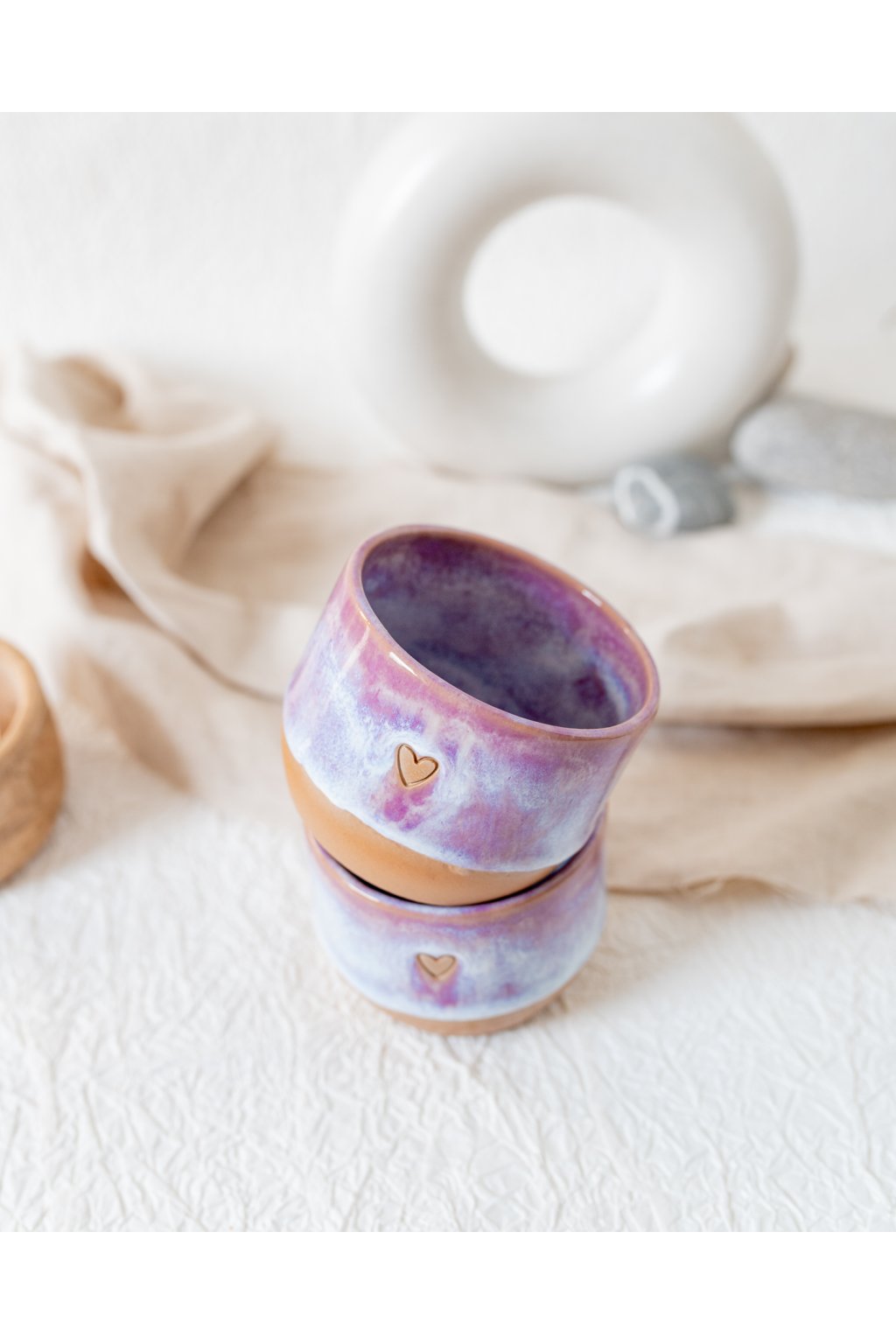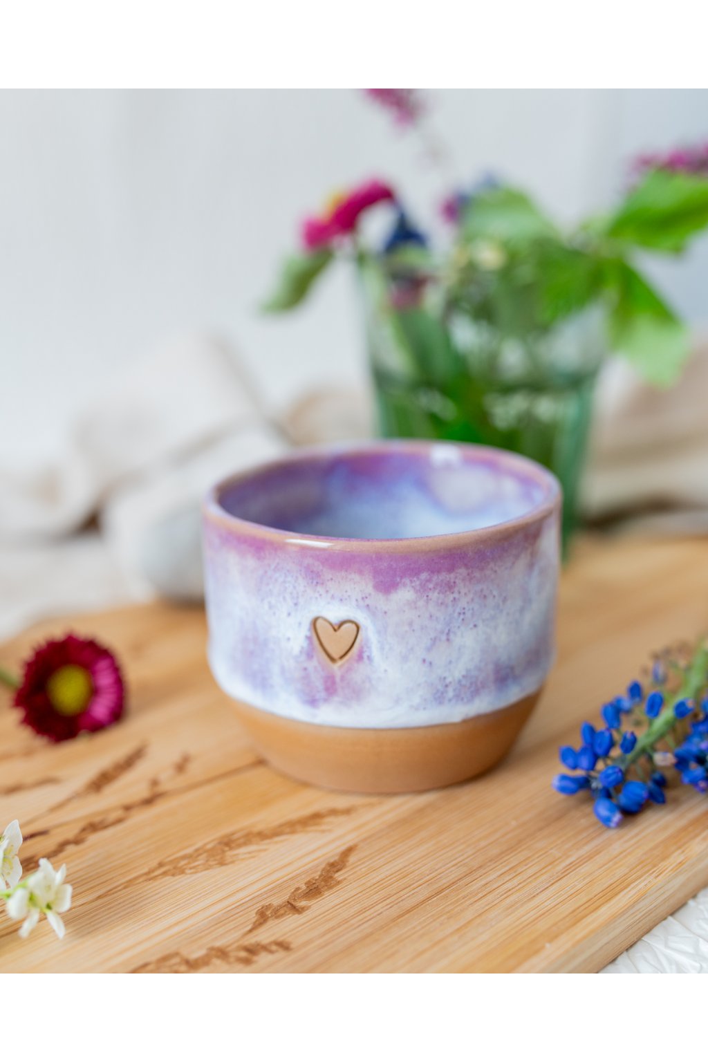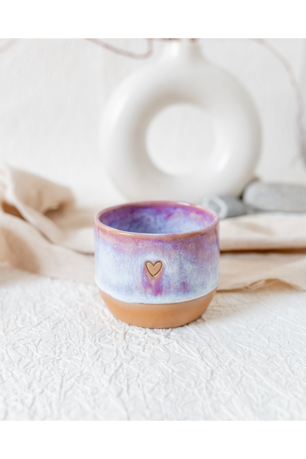 Ručně vyrobený kalíšek na kávu - Červánkový se srdíčkem (150-170 ml) - II.jakost