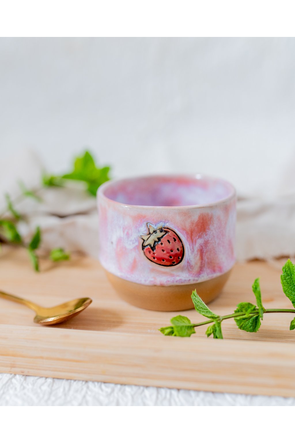 Ručně vyrobený kalíšek na kávu - Jahůdka na jahůdce Sakura (150-170 ml)