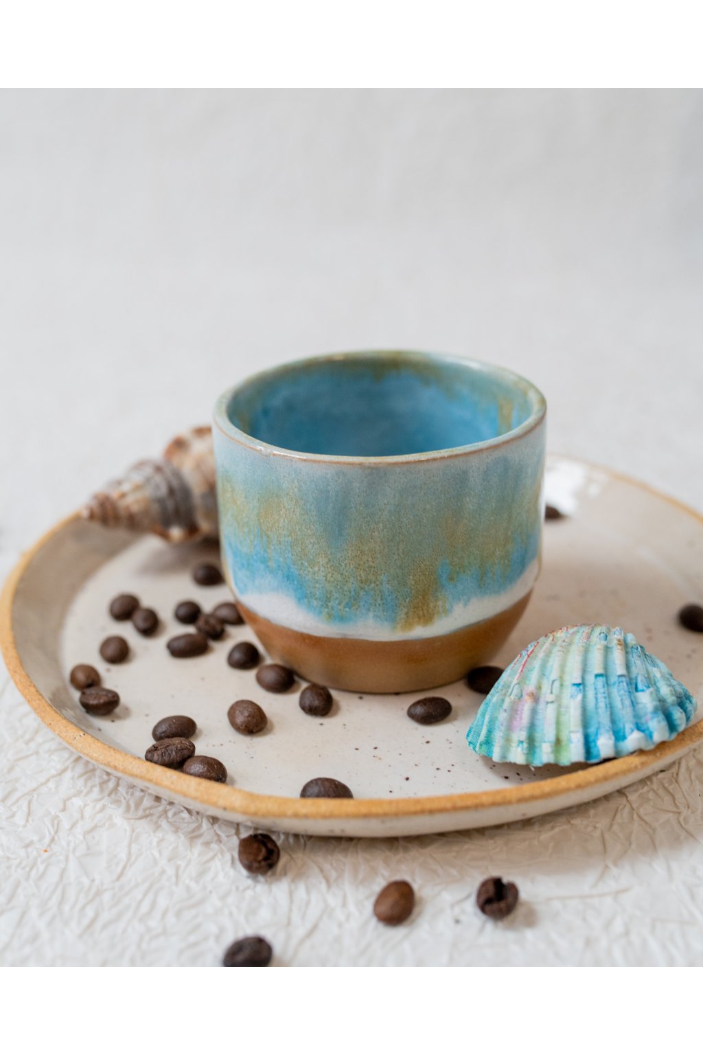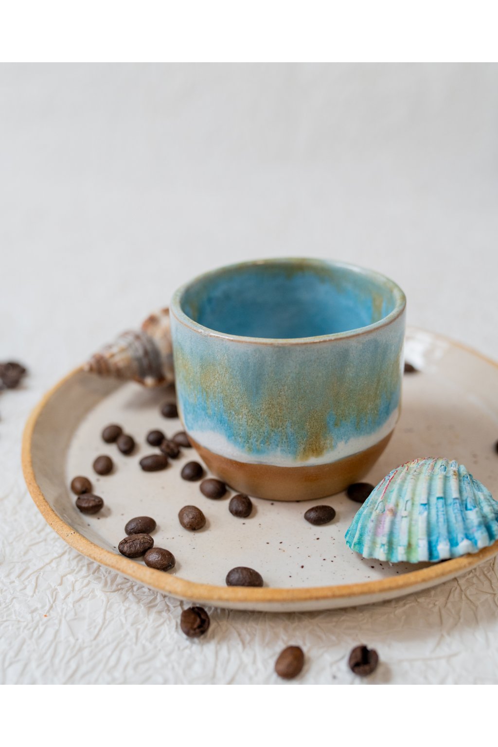 Ručně vyrobený kalíšek na kávu - Modro-hnědý (150-170 ml)