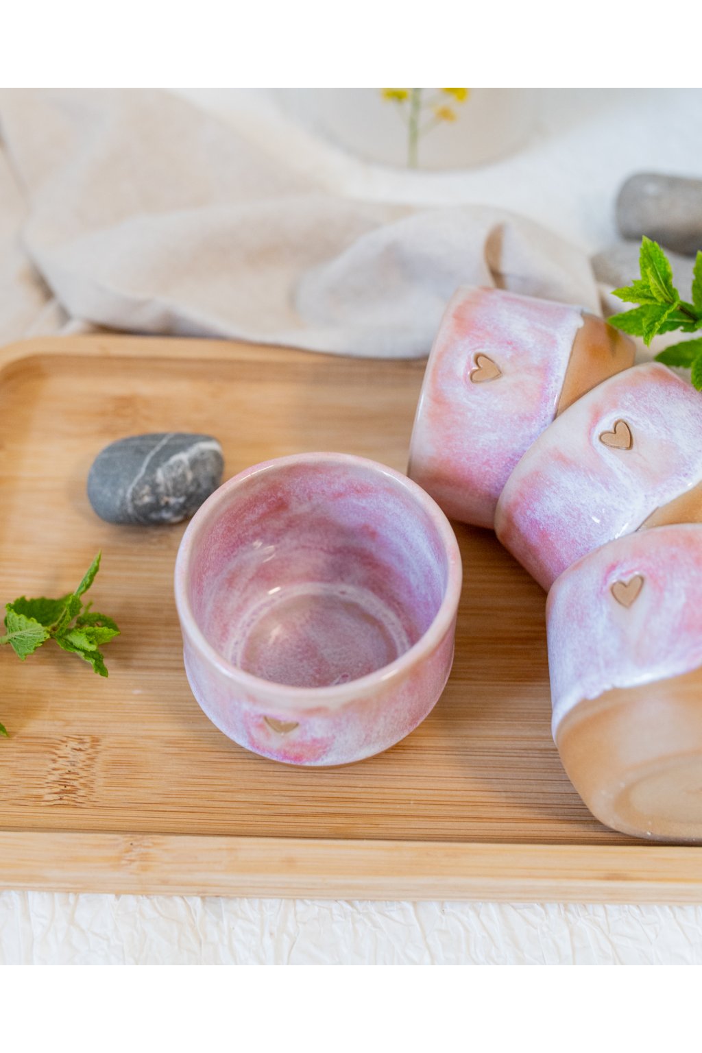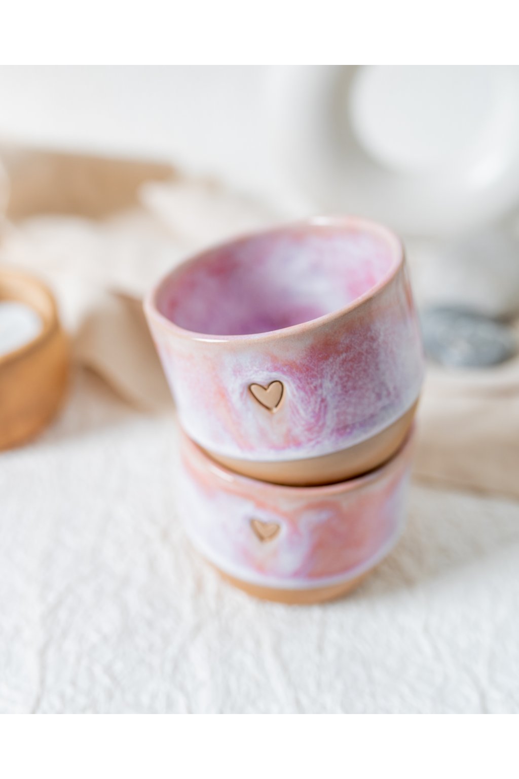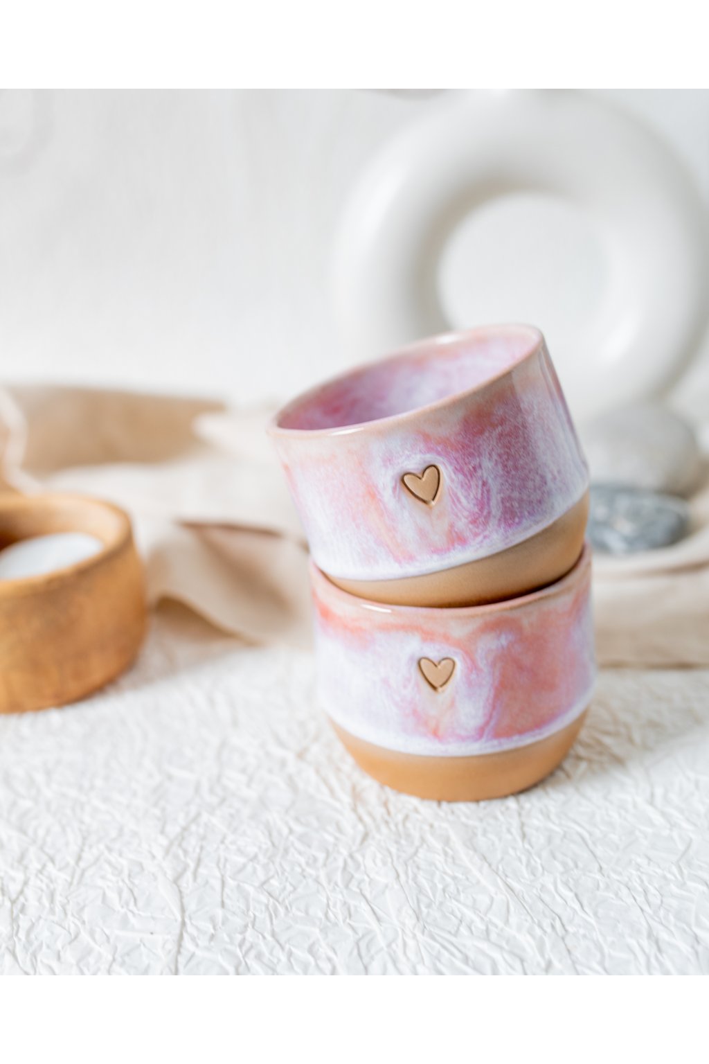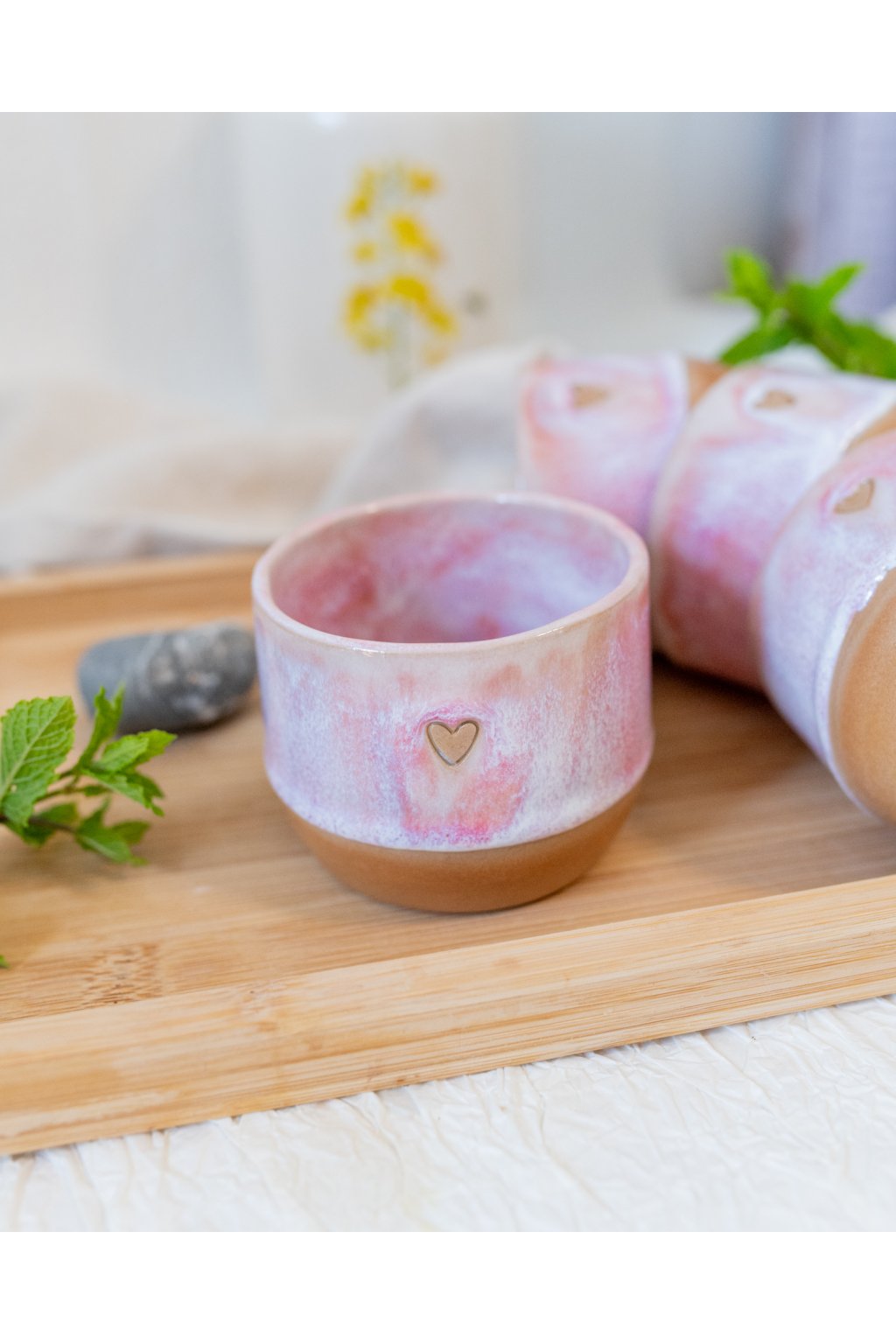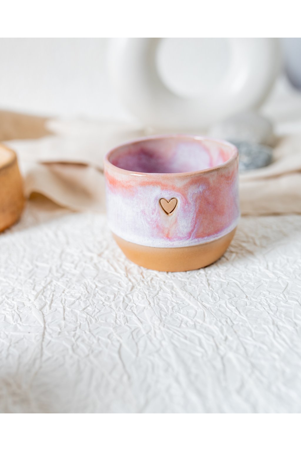 Ručně vyrobený kalíšek na kávu - Sakura se srdíčkem (150-170 ml) - II.jakost